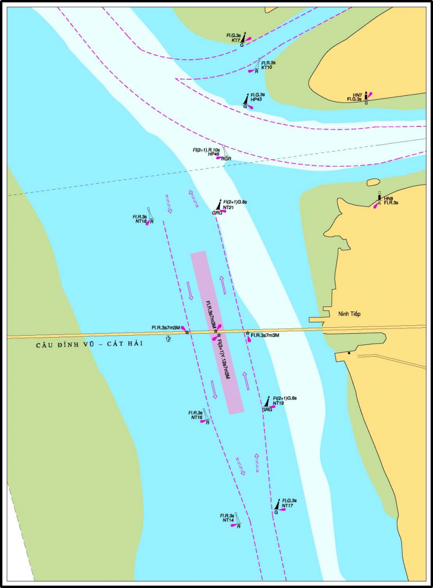 Các phương tiện thuỷ hành hải trên đoạn Nam Triệu luồng hàng hải Hải Phòng phải đi đúng tuyến phân luồng giao thông đoạn qua cầu Đình Vũ - Cát Hải theo sơ đồ đính kèm../.