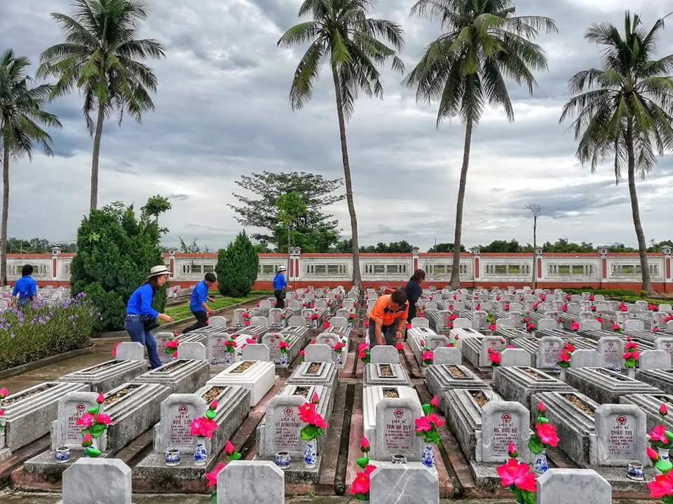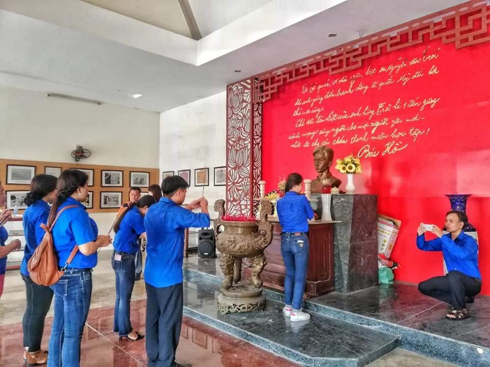 Chiều ngày 26/7/2018, đoàn đã đến đặt vòng hoa và thắp hương tri ân các anh hùng liệt sỹ tại nghĩa trang liệt sỹ xã Bình Châu - huyện Bình Sơn- Quảng Ngãi.