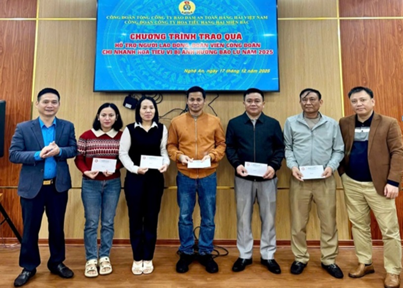 Từ ngày 16/12 đến 19/12/2025, Công đoàn Công ty Hoa tiêu hàng hải miền Bắc đã tổ chức chương trình trao quà hỗ trợ các gia đình đoàn viên, người lao động trong Tổng công ty bị thiệt hại nặng nề do mưa lũ.