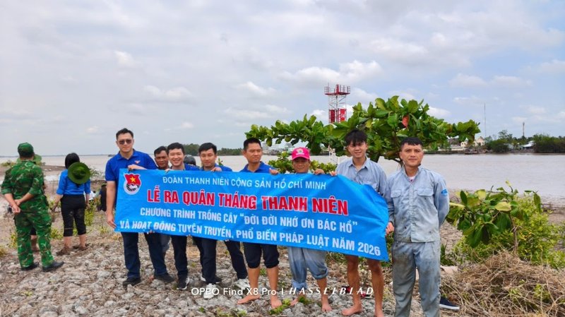 Thiết thực chào mừng kỷ niệm 95 năm Ngày thành lập Đoàn TNCS Hồ Chí Minh và hưởng ứng phong trào "Tết trồng cây - Đời đời nhớ ơn Bác Hồ", ngày 21/3/2026, Chi đoàn Bảo đảm an toàn hàng hải Tây Nam Bộ đã phối hợp tổ chức chuỗi hoạt động đầy ý nghĩa: Trồng cây bảo vệ luồng hàng hải và tuyên truyền pháp luật cho cư dân ven sông.