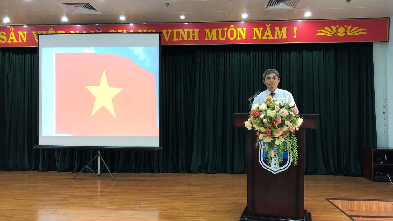 Đ/C Phạm Quốc Súy - Bí thư Đảng ủy, Chủ tịch Hội đồng thành viên phát biểu bế mạc buổi Lễ Chào cờ đầu tháng 4 năm 2019